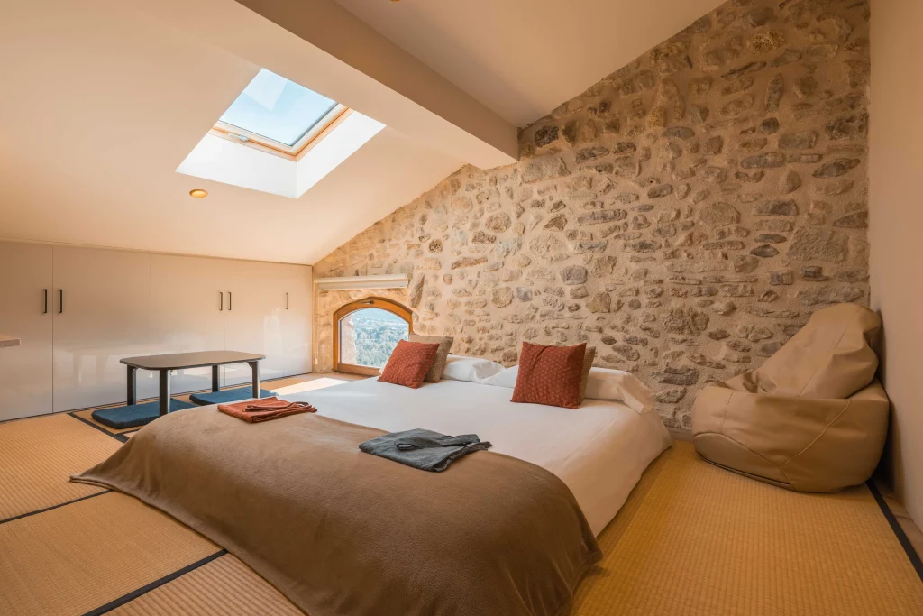 Donem molta importància a la natura, als colors i a les estacions de l’any de la mateixa manera que es dona al Japó. Cada habitació té noms d’elements naturals en japonès: aigua (mizu), pedra (ishi), vent (kaze) i estacions de l’any (haru, natsu, aki, fuyu). Intentem trobar aquells elements en comú entre la cultura catalana i la japonesa en l’entorn rural i natural.